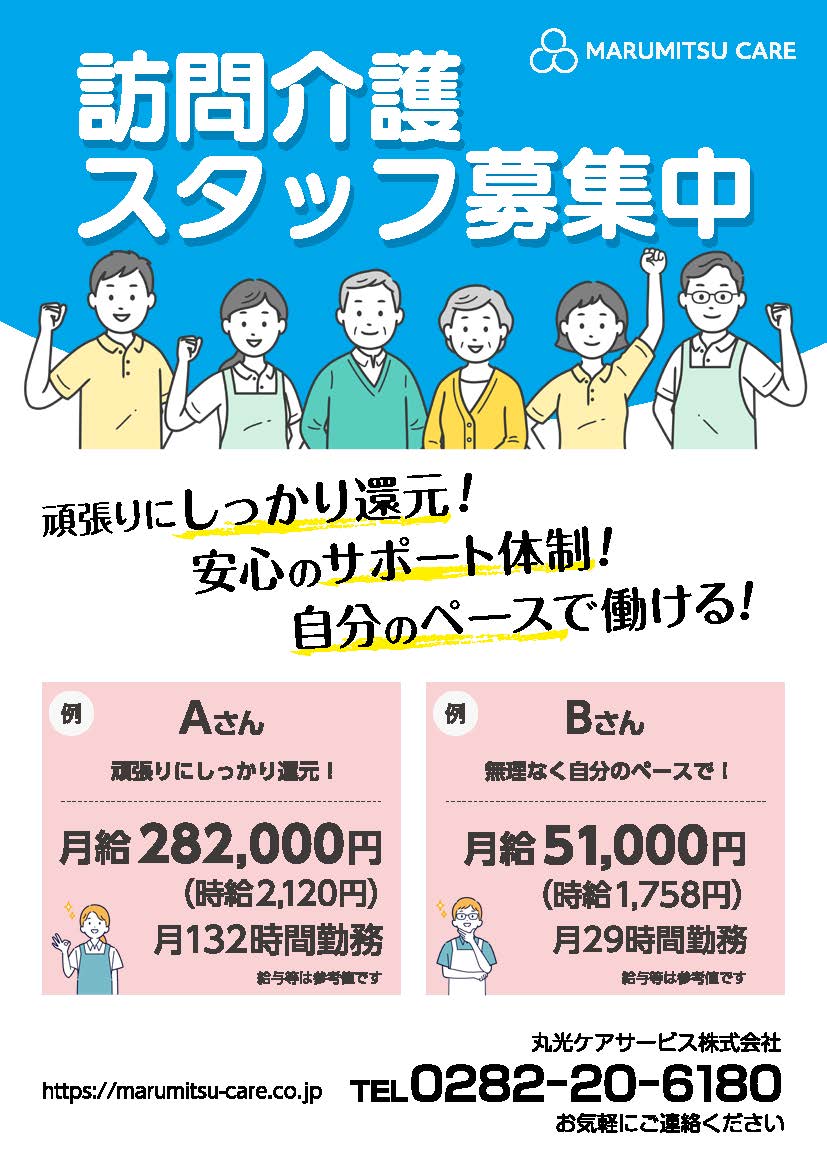 丸光ケアサービス株式会社では、訪問介護スタッフの募集を開始しました。